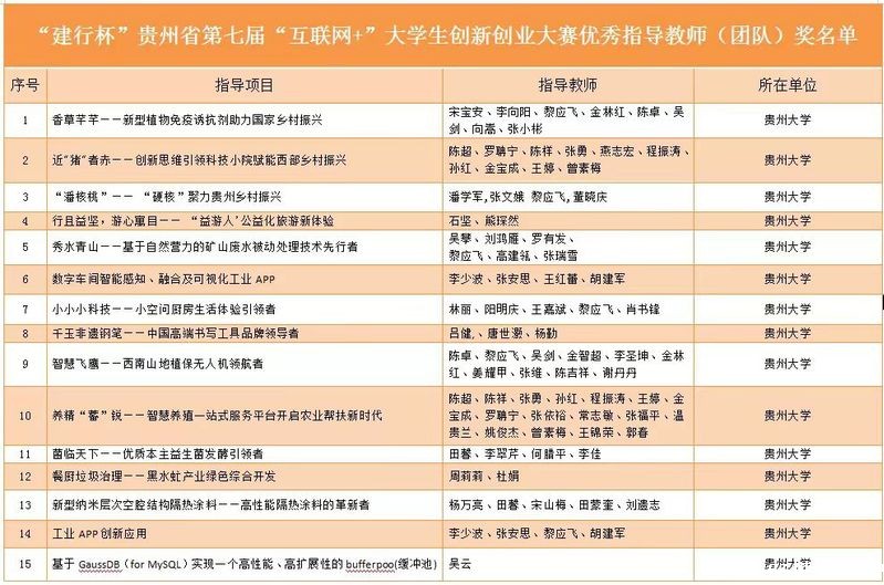 近日,省教育厅公布了“建行杯”贵州省第七届“互联网+”大学生创新创业大赛获奖名单。我校共获23项大奖,其中包括高教主赛道荣获金奖9项、银奖4项;“红色筑梦之旅”赛道荣获金奖4项、银奖1项;产业命题赛道荣获金奖2项、银奖1项。参赛项目“菌临天下——优质本土益生菌发酵引领者”同时荣获高教主赛道最佳商业价值奖,项目“香草芊芊——新型植物免疫诱抗剂助力国家乡村振兴”同时荣获“红色筑梦之旅”赛道乡村振兴奖。