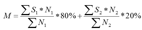 其中,为课程考核积分,为学位课(含必修课)成绩,为该课程学分,为非学位课成绩,为该课程学分。注:在规定时间内应修完而未修完的课程,以零分参与计算。
