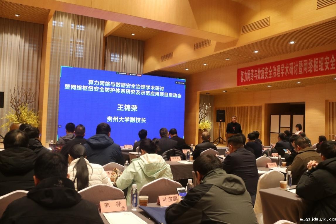 12月14日上午,“算力网络与数据安全治理学术研讨暨算力网络枢纽安全防护体系研究及示范应用项目”启动会在贵阳圆满举行。会议由米兰体育官方手机app网站下载米兰app官方下载安装承办,分学术报告、项目启动及青年论坛三个环节,来自重庆市綦江区大数据发展局、上海交通大学、西安电子科技大学、暨南大学、广州大学、重庆邮电大学、贵州师范大学等60余人参加会议,会议由米兰app官方下载安装副主任陈玉玲教授主持,我校副校长王锦荣教授参加启动会并致辞。